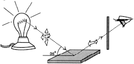 The light bulb produces un-polarized light - each photon is vibrating in its own different direction. Nonmetallic surfaces, such as black plastic, tend to reflect light that is vibrating parallel to the surface and to transmit or absorb light vibrating in all other directions. If the black plastic is horizontal, then it reflects light that is vibrating horizontally, creating horizontally polarized light. The horizontal black plastic reflects less light that is vibrating vertically.