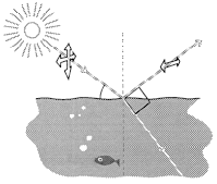 Look through a polarizer at the surface of a pond on a bright, sunny day. Rotate the polarizer and notice that at one orientation of the polarizer, the surface reflections are greatly reduced and you can see beneath the surface of the water. Rotate the polarizer 90 degrees from this orientation, and the surface reflections block your view of the underwater world. This is why fishermen wear polarizing sunglasses.